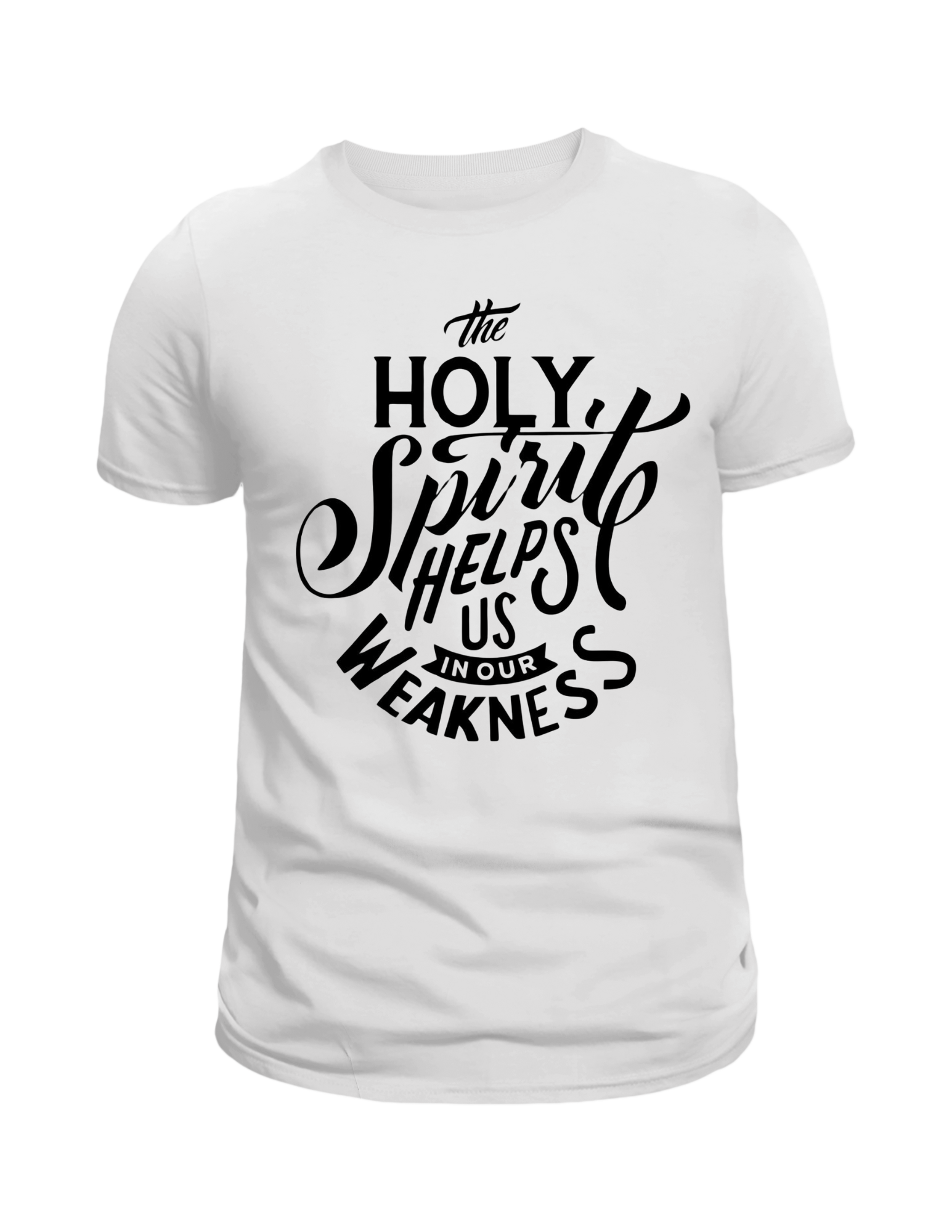 Embrace the strength and comfort of the Holy Spirit with our 'The Holy Spirit Helps Us in Our Weakness' tee. Featuring a beautifully hand-lettered design, this shirt serves as a reminder of God’s unwavering presence in our lives, even in our most vulnerable moments. Made from soft, premium fabric, it offers both style and comfort for everyday wear. Let this powerful message inspire and encourage those around you.